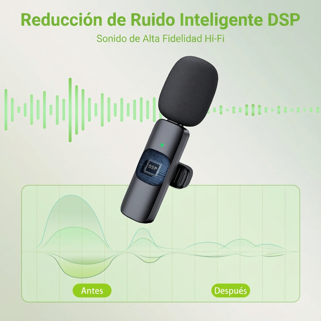 Micrófono inalámbrico mini con reducción de ruido y conexión instantánea para vídeos, directos y llamadas claras.
